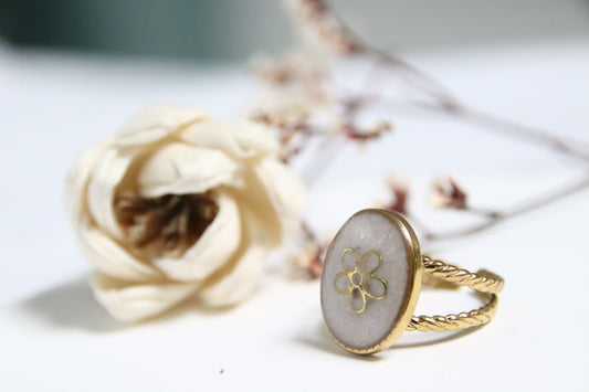 Bague Ovale nature- Bague dorée en acier inoxydable